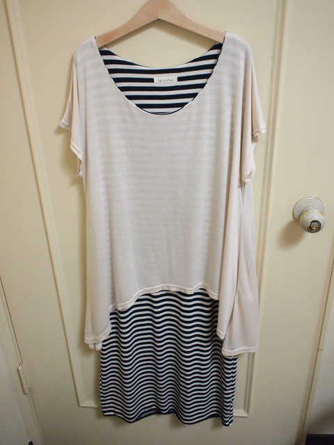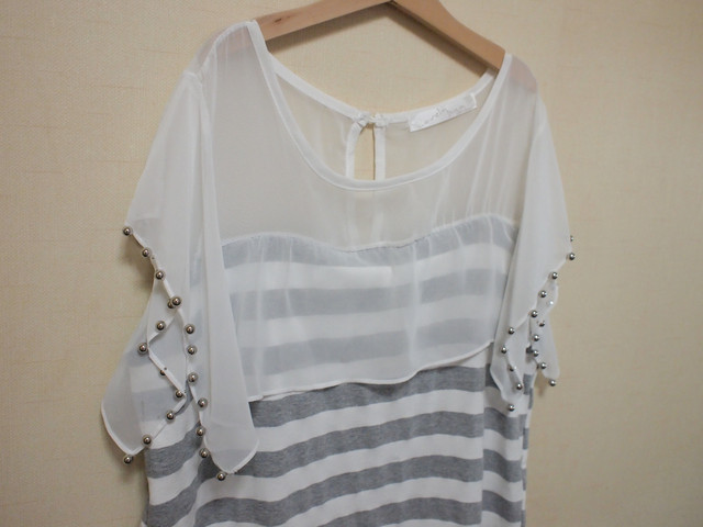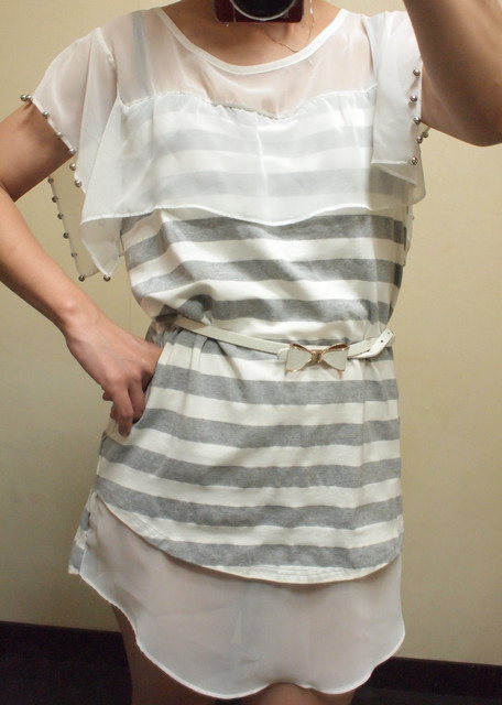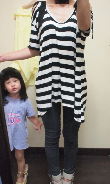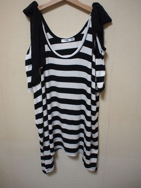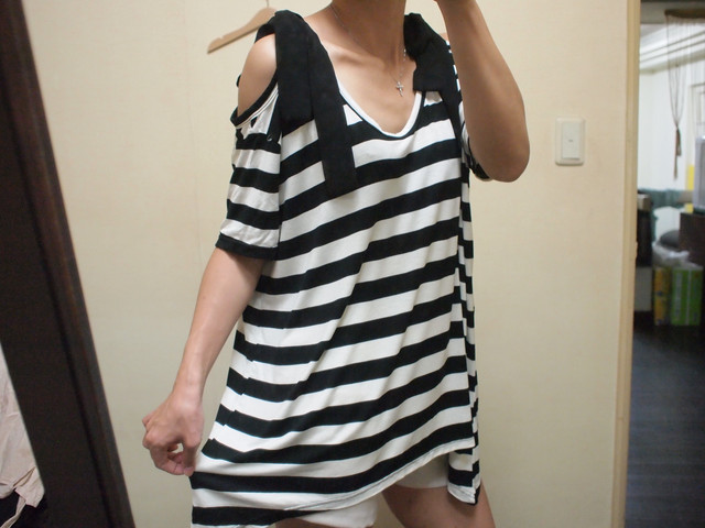 b.條紋露肩綁帶蝴蝶結裝飾長上衣$400*2