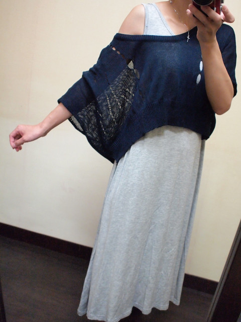 i.藍針織罩衫+灰長裙整套(顯瘦款)$500