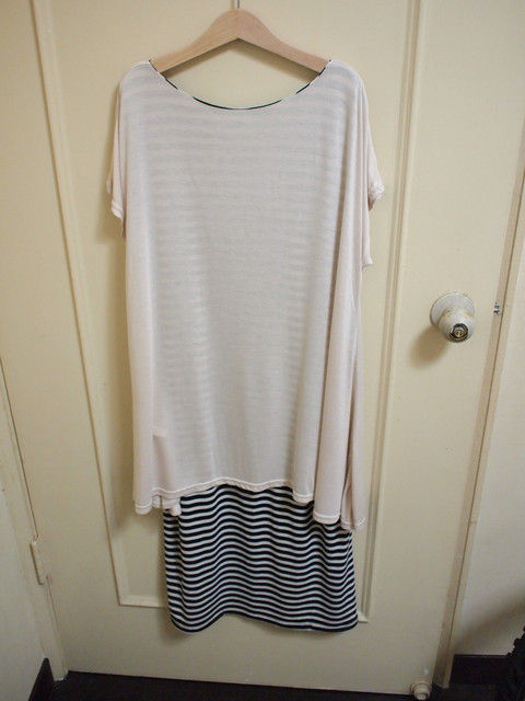a.紗拼接灰條紋洋$400