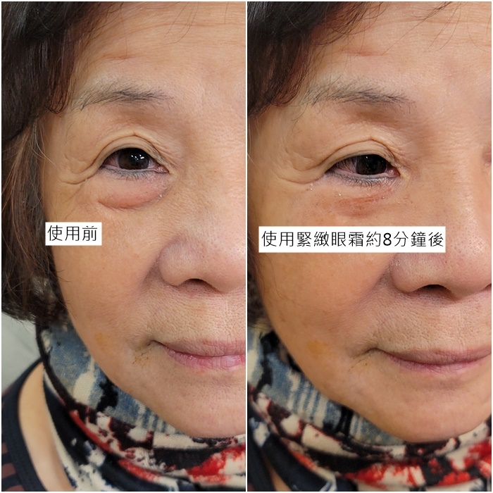 大約過了8分鐘左右~原本偌大的眼袋~變成了令人羨慕的小臥蠶(居然)(這真是太不可思議了阿阿阿阿阿阿)